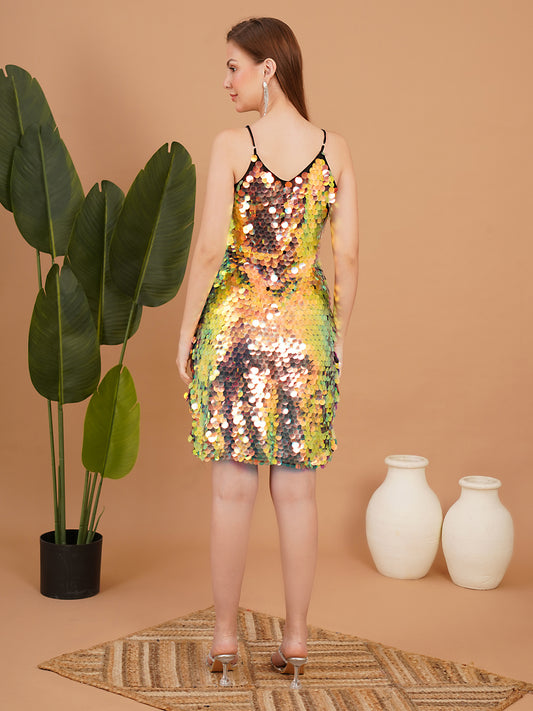 Golden Sequin Sleeveless Mini Dress for Women – Party & Cocktail Wear