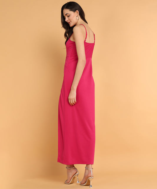 Pink One Shoulder Slit Midi Dress for Women