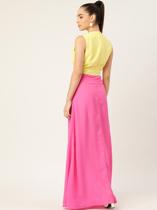 Yellow and Pink Colorblock Sleeveless Maxi Dress for Women