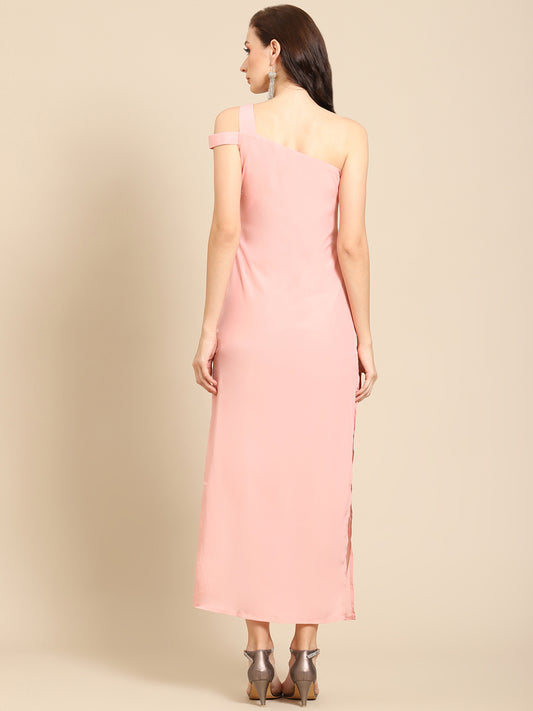 Women’s Peach One Shoulder Satin Maxi Dress – Elegant Party Wear Gown