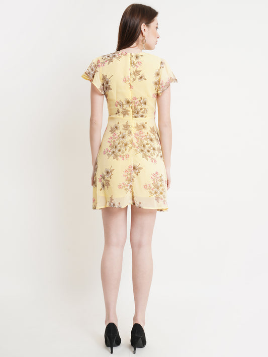 Yellow Floral Wrap Dress for Women | Summer Short Sleeve A-Line Dress