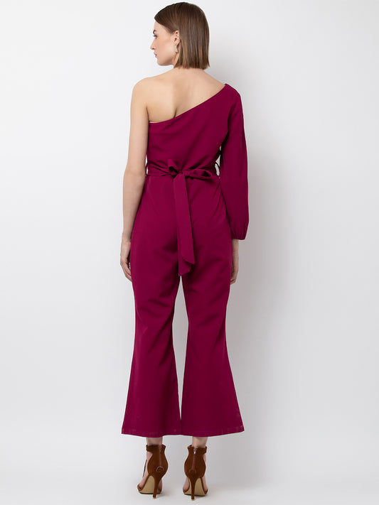 Chic One-Shoulder Fuchsia Jumpsuit with Bell Sleeve for Women