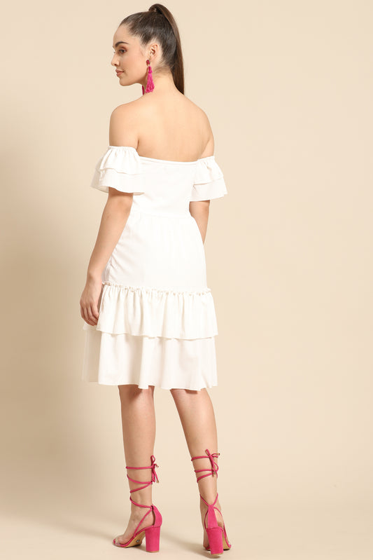 Chic Off-Shoulder White Ruffle Dress – Stylish Summer & Brunch Outfit for Women