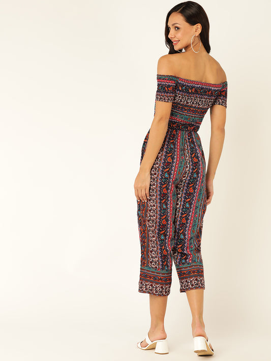 Boho Print Off-Shoulder Jumpsuit for Women – Casual & Vacation Wear
