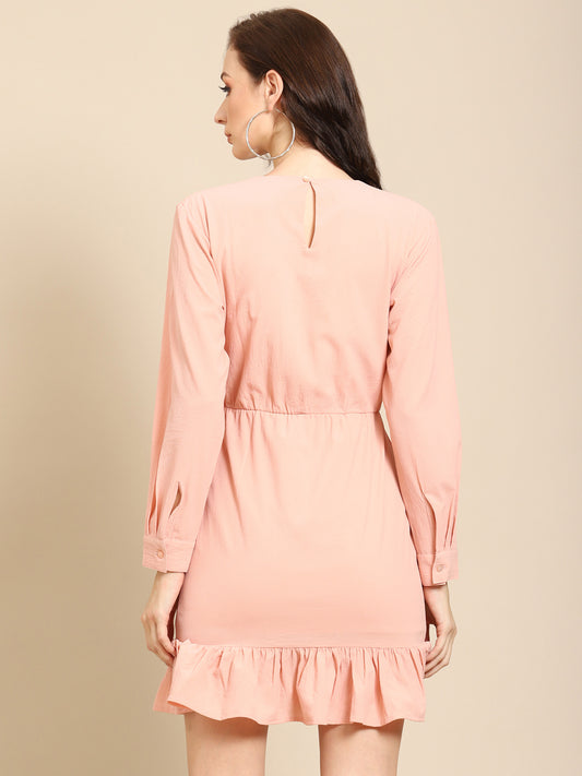 Chic Peach Long Sleeve Mini Dress with Ruffle Hem for Women
