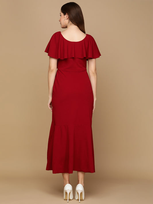 Elegant Maroon Ruffle High Low Dress for Women | Party Wear Midi Dress