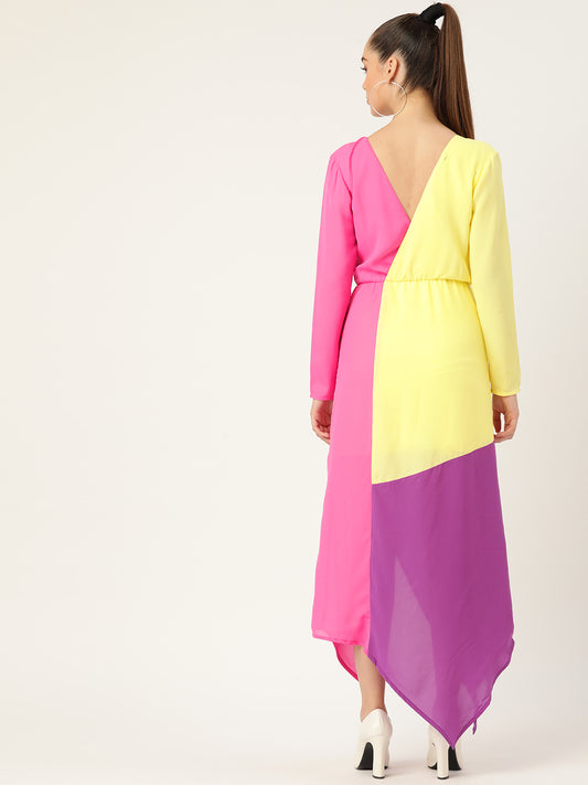 Yellow and Pink Colorblock Sleeveless Maxi Dress for Women