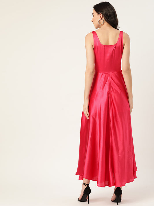 Women Pink Sleeveless Satin V-Neck Maxi Dress
