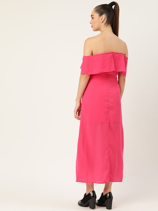 Women Pink Off Shoulder Ruffle Maxi Dress