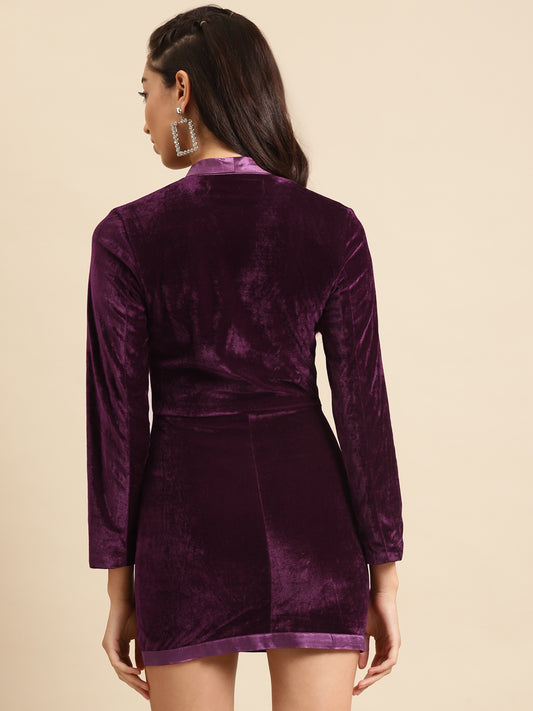Purple Velvet Blazer Style Bodycon Mini Dress for Women | Party Wear Dress