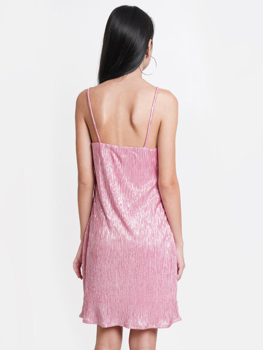 Pink Metallic Shimmer Dress for Women | Sleeveless Cowl Neck Partywear