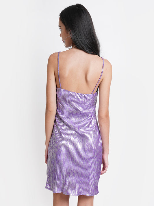 Purple Shimmer Cowl Neck Dress for Women | Sleeveless Metallic Party Dress