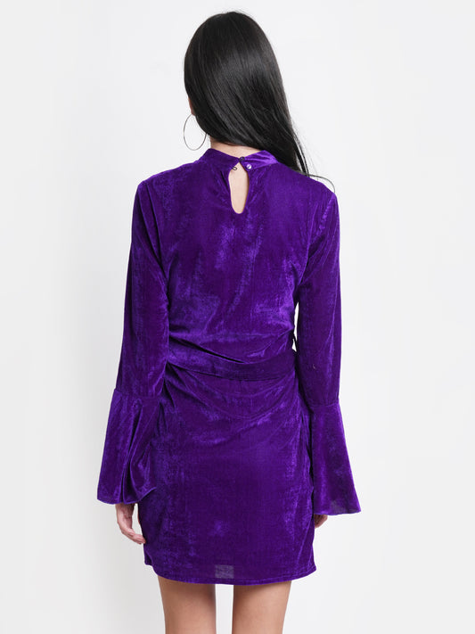 Purple Velvet Choker Neck Dress for Women | Bell Sleeve Party Wear Dress