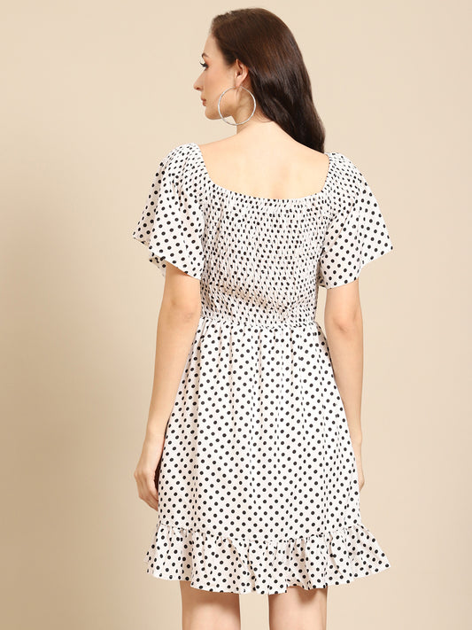 Chic Polka Dot Short Dress for Women | Ruffle Hem Smocked Fit & Flare Dress