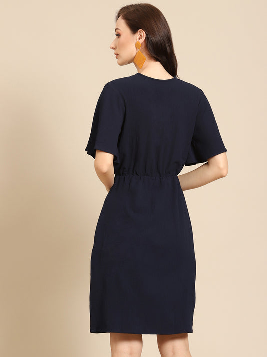 Elegant Black Knee-Length Dress for Women | V-Neck Tie-Waist Casual Dress
