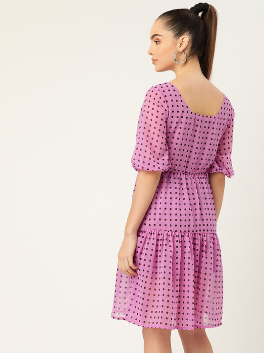Trendy Lavender Polka Dot Puff Sleeve Mini Dress for Women
