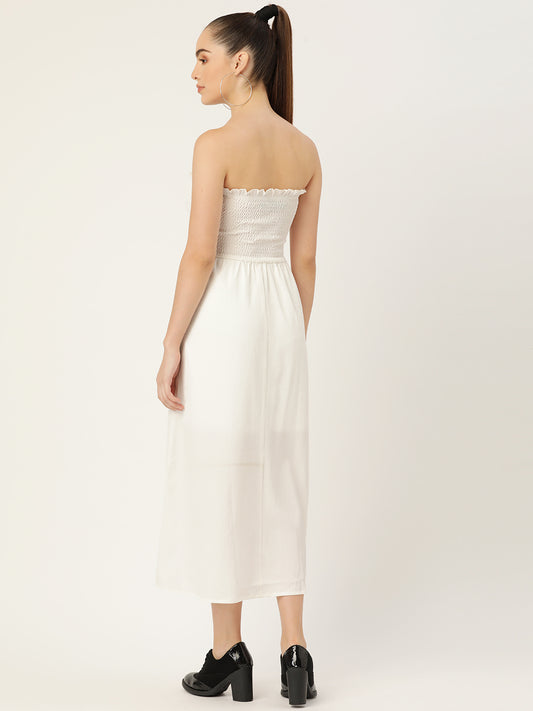 Elegant White Strapless Maxi Dress with Smocked Bodice – Perfect Summer Outfit