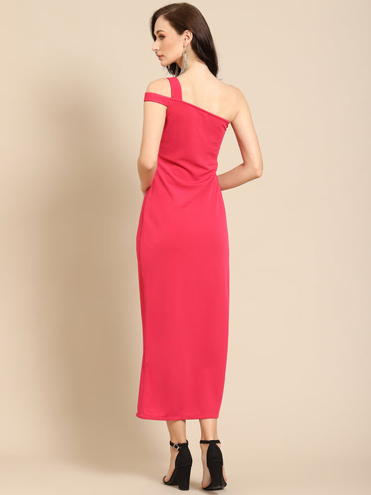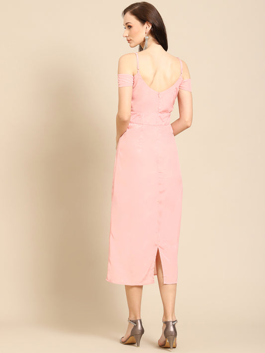 Elegant Pink Cold Shoulder Midi Dress for Women | Stylish Summer Outfit