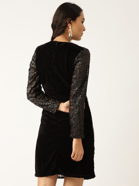 Black Sequin Mesh Overlay Dress | Elegant Evening Party Wear Dress for Women
