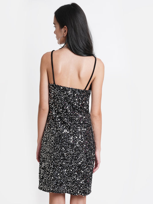 Black Sequin Bodycon Party Dress for Women | Sleeveless Shimmer Short Dress
