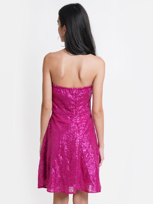 Hot Pink Sequin Strapless Party Dress for Women | Short Glitter Dress