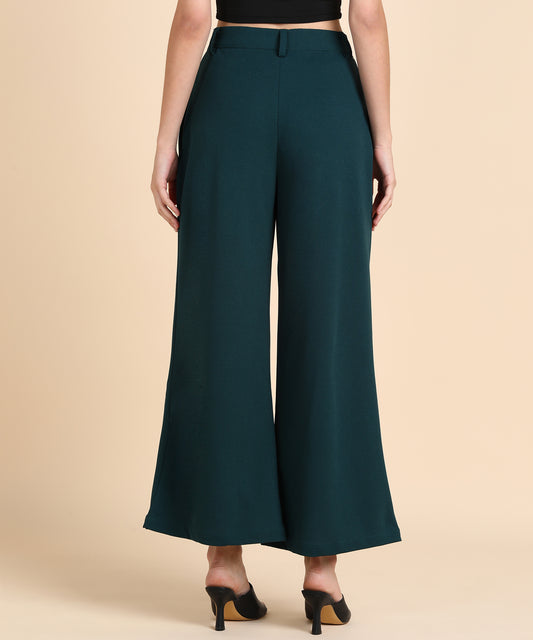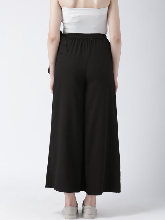Black Wrap Style Wide Leg Trousers for Women