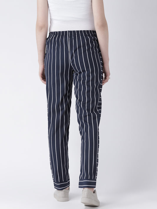 Women's Navy Blue Vertical Striped Pants – Slim Fit Casual Trousers with Pockets