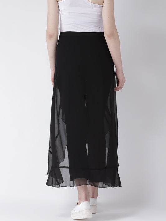 Black Layered Overlay Tie-Up Trousers for Women – Stylish Semi Sheer Pants