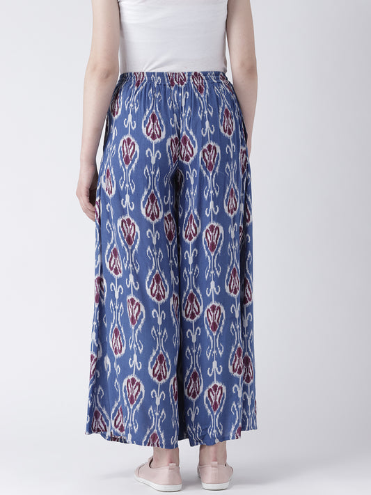 Women's Indigo Blue Ikat Printed Wide-Leg Trousers – Casual Ethnic Cotton Pants