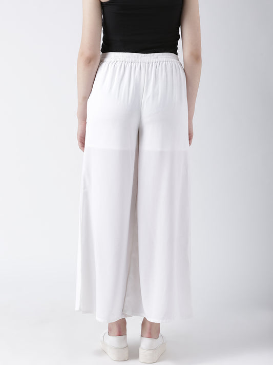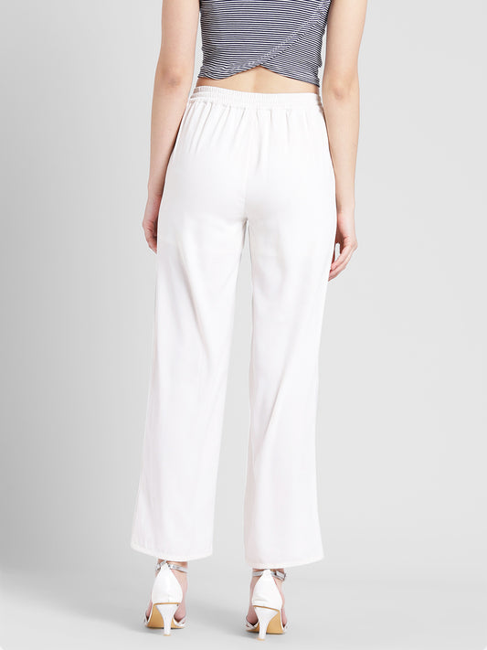 White Wrap Style Wide Leg Trousers for Women
