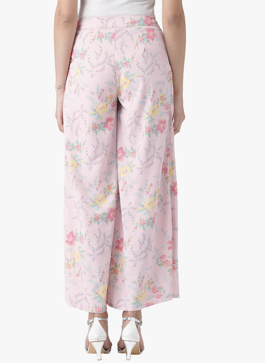 Women's Pink Floral Printed Wide-Leg Palazzo Pants with Pleats