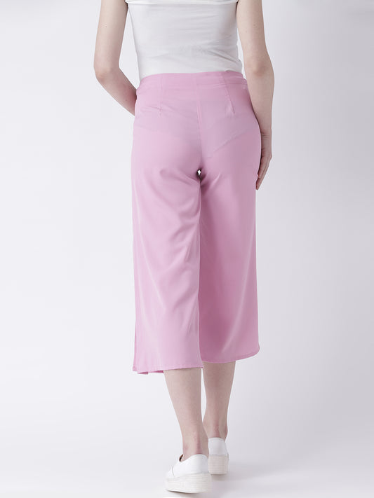 Women’s Pink Culottes Pants – High Waist Wide Leg Cropped Trousers