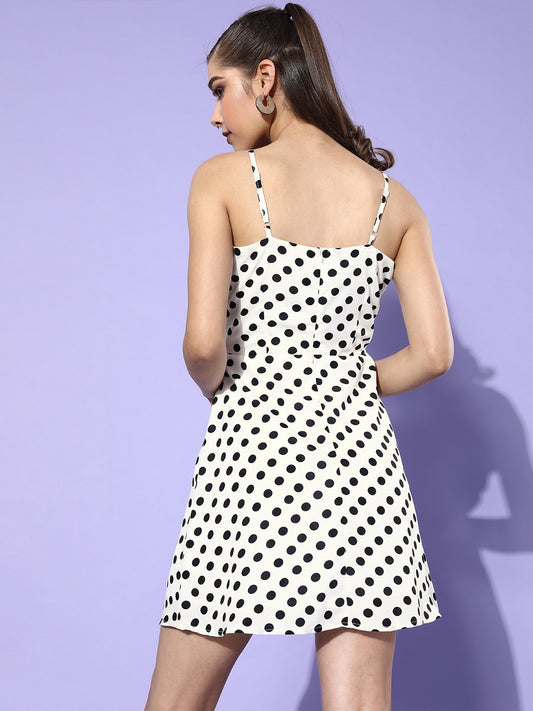 White Polka Dot Fit & Flare Dress with Front Cut-Out Detail