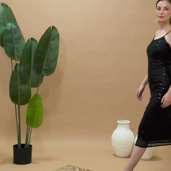 Shine with confidence in this stunning Black Sequin Bodycon Midi Dress, the ultimate show-stopper for any glamorous evening. The Black Sequin Bodycon Midi Dress features shimmering black sequins, a flattering body-hugging fit, and thin straps that add a touch of elegance. Perfect for cocktail parties, dinner dates, or formal events, the Black Sequin Bodycon Midi Dress is designed to highlight your curves while keeping you comfortable. Step into the spotlight with this chic and timeless Black Sequin Bodycon Midi Dress and complete the look with heels and statement accessories.