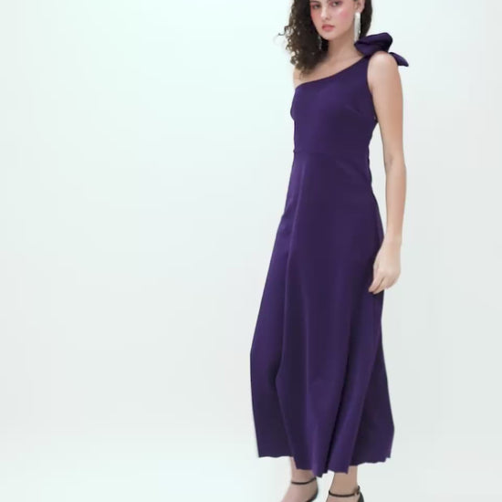 Step into elegance with this Scuba one shoulder purple midi dress featuring a statement bow detail and a smooth A-line silhouette. Perfect for evening parties, weddings, or formal events. Sleek, sophisticated, and timelessly chic.