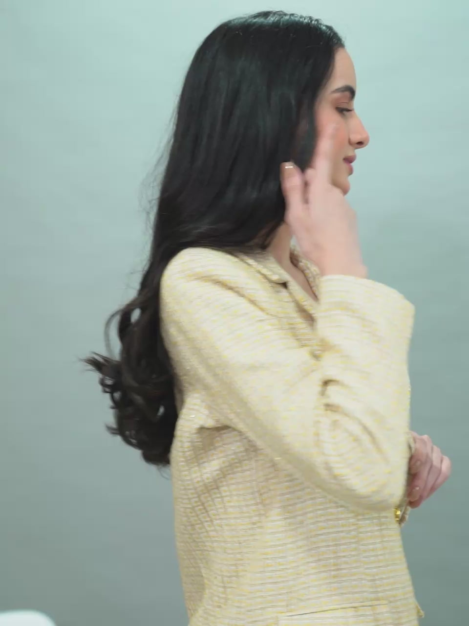 Vanilla Pearl Tweed is a refined two-piece look crafted in soft vanilla-hued tweed with a subtle pearly texture. Featuring a tailored blazer with elegant gold-tone buttons and matching flared trousers, this ensemble blends classic sophistication with modern polish—perfect for chic daytime events or elevated evenings.